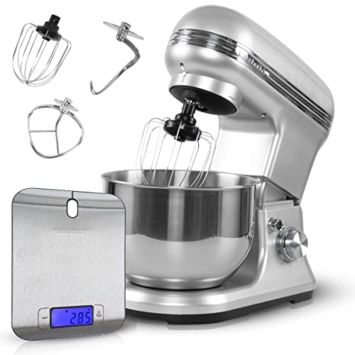 | Lieferumfang | 3 Attachments und Spritzschutzdeckel | inkl. Standmixer-Aufsatz | 1x SEVERIN Küchenmaschine mit integrierter Waage KM 3898 inkl. Knethaken, Flachrührer und Schneebesen | Küchenmaschine, 7-Liter-Edelstahlschüssel, abnehmbarer Spritzschutz, drei Rührelemente | Inklusive austauschbarer Klingen und Zubehörteile sowie einem inspirierenden Rezeptbuch. | Patisserie-Set: Schlagbesen, Rührbesen und Knethaken | Basis | 3-teiliges Pâtisserie-Set CHEF | - | - | Basis | Basis | inkl 5L Edelstahlschüssel | 1 x Deckel, 1 x Durchlaufschnitzler, 1 x Knethaken, 1 x Raspelwendescheibe grob/fein, 1 x Reibscheibe fein, 1 x Reibscheibe grob, 1 x Rührbesen, 1 x Schlagbesen, 1 x Schneidwendescheibe dick/dünn | Küchenmaschine, transparente Kunststoffschüssel (2.3 l), Deckel, Einfüllhilfe, Stopfer, Multifunktionsmesser aus Edelstahl, Schneid-Wendescheibe, Raspel-Wendescheibe, Teigwerkzeug aus Kunststoff, Schlagscheibe. | Küchenmaschine, 2-in-1 Schneidescheibe, Zitruspressenaufsatz, Standmixeraufsatz, multifunktionales Zubehör | Entsafter | Küchenmaschine, Deckel, Durchlaufschnitzler, Edelstahl-Rührschüssel, Raspelwendescheibe grob/fein, Reibscheibe fein, Schneidwendescheibe dick/dünn, Professional Knethaken, Professional Schlagbesen, Professional Flexi- Rührbesen, Bedienungsanleitung | 3-teiliges Patisserie-Set, Zerkleinerer, Acryl-Mixaufsatz, Zitruspresse, Spritzschutz | 5 Zubehör-Scheiben, Knetmesser, Stopfen, Edelstahl-Messer, Behälter 2,0l | Rührschüssel, Schneebesen, Spritzschutz, Knethaken |