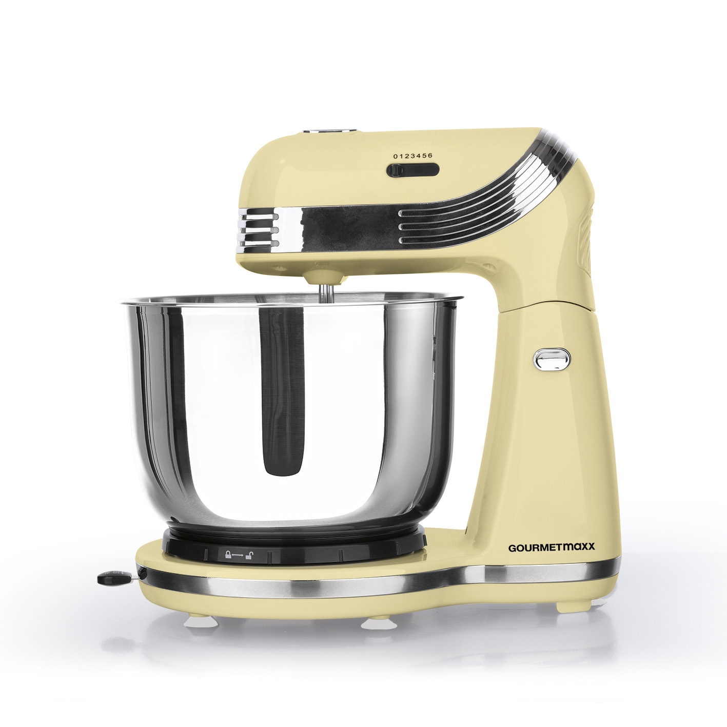 Die GOURMETmaxx Küchenmaschine im Retro-Stil der 50er Jahre bietet die Möglichkeit, kleine Teigmengen einfach und bequem zu verarbeiten. Mit ihrem attraktiven Retro-Design fügt sie sich zudem stilvoll in jede Küche ein. Die Maschine überzeugt durch ihre gute Verarbeitung und ist trotzdem zu einem erschwinglichen Preis erhältlich.