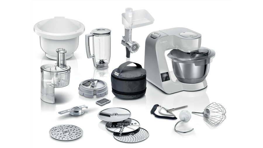 | Weiteres Zubehör | Standmixer, Spritzgebäckvorsatz, Gemüseschneider, 1 Schüssel, Flexi-Rührer, Eisbereiter |