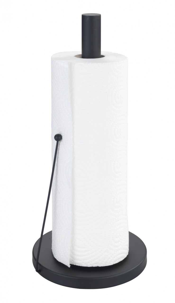 Der Wenko Küchenrollenhalter Clayton in Schwarz bietet ein schlichtes und zeitloses Design sowie eine stabile Bauweise. Er verfügt über einen praktischen Halter, der das Abrollen des Küchenpapiers verhindert. Der Aufbau ist einfach, kann jedoch für einige Nutzer herausfordernd sein. Der Halter ist nicht für sehr große oder dünne Küchenrollen geeignet.