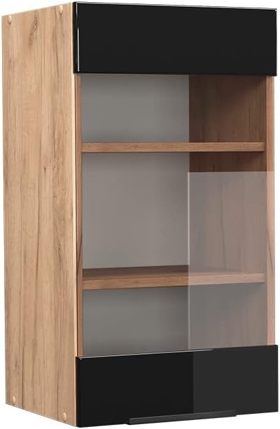 | Name | Küchenglasschrank Fame-Line Schwarz Eiche hochglanz 40 cm Vicco |
