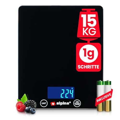 Die Alpina digitale Küchenwaage bietet eine präzise Gewichtsmessung bis 15 kg in 1 g Schritten und ein großes, gut lesbares LCD-Display. Ihr modernes Design und die flache Oberfläche machen sie praktisch in der Küche. Sie ist vielseitig einsetzbar, einfach zu bedienen und lässt sich leicht reinigen. Allerdings berichten einige Nutzer von Problemen mit der TARE-Funktion und der Berührungsempfindlichkeit.