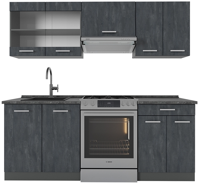 Küche R-Line Schwarz Beton/Anthrazit 200 cm ohne Arbeitsplatte Vicco