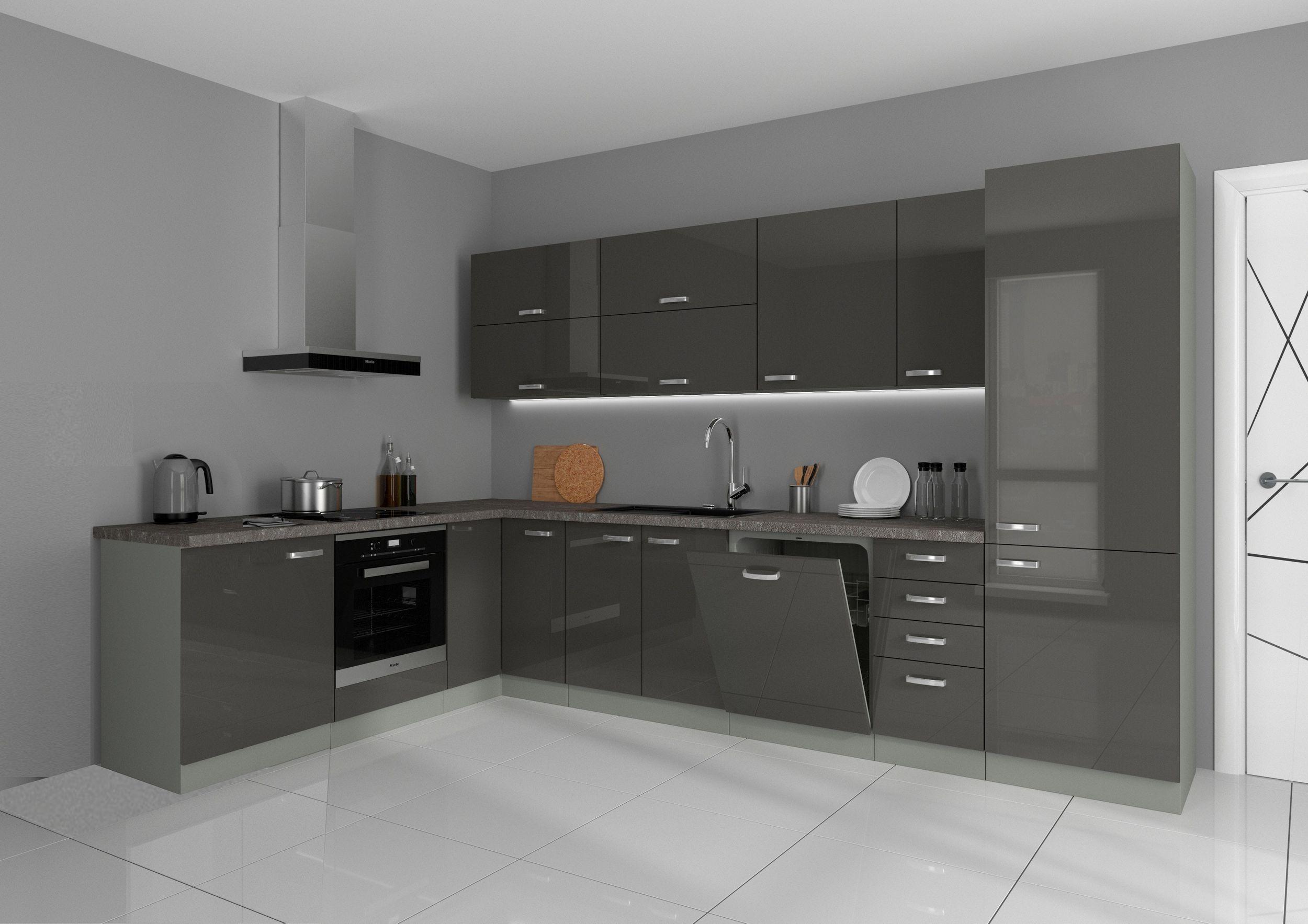 | Name | Küche 'Bianca Ecke II' Küchenzeile, Hochglanz Grau/ Grey, 210x330 cm |
