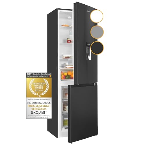 Die Exquisit Kühl-Gefrierkombination KGC320-95-E-WS-040C inoxlook-az bietet Ihnen mit einem Nutzinhalt von 313 Litern ausreichend Platz für die Aufbewahrung Ihrer Lebensmittel. Dank des Wasserspenders haben Sie jederzeit frisches Wasser zur Hand und der Alarm informiert Sie zuverlässig über mögliche Temperaturschwankungen. Zudem verfügt das Gerät über ein Vier-Sterne-Gefrierfach, um Ihre Lebensmittel optimal einzufrieren.