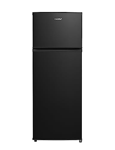 Comfee RCT284DK2A Kühl- Gefrierkombination/Gefrierteil oben/176 kWh/Jahr/143cm Höhe/LED Licht/Reversibles Türscharnier/Schwarz