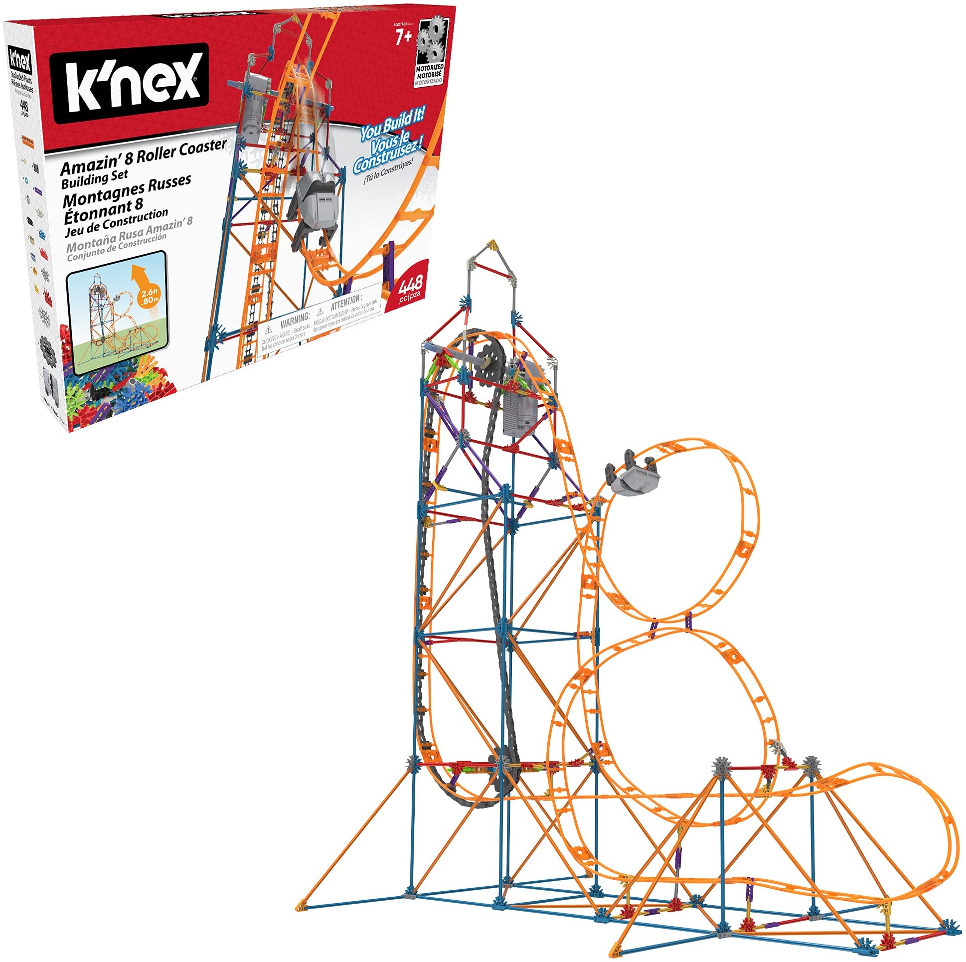 | Name | K'NEX 80216 Amazin' 8 Coaster , Colourful Construction Set for Boys and Girls, 448 Piece Kids Building Set for Children Aged 7 Years and Older |