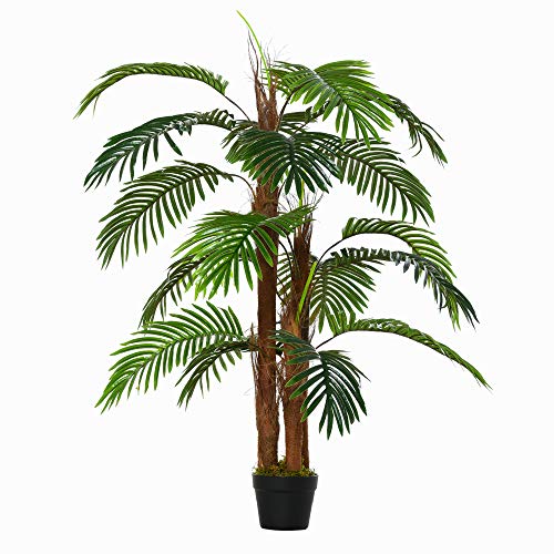 Outsunny künstliche Pflanzen 120 cm künstlicher Palmen Palme Kunstpflanze Kunstbaum Kunstpflanzen im Topf Zimmerpflanze Dekopflanze Büropflanze Kunststofftopf für drinnen und draußen