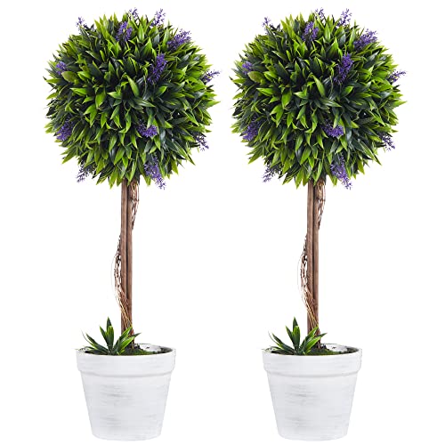 HOMCOM Kunstpflanze Lavendel 2er-Set Künstliche Pflanzen60 cm Zimmerpflanze im Topf, Kunstbaum mit Kunstmoos für Indoor, Outdoor
