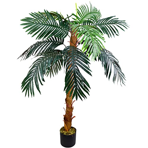 Decovego Künstliche Palme groß Kunstpalme Kunstpflanze Palme künstlich wie echt Plastikpflanze Balkon Königspalme Kokospalme Deko 140 cm hoch