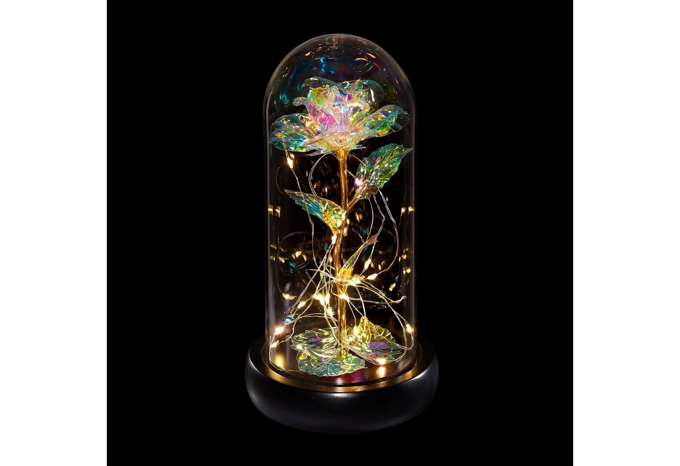 relaxdays Kunstblume Ewige Rose im GlasGalaxy-Design, LED-Lichterkette, Höhe 22 cm, bunt