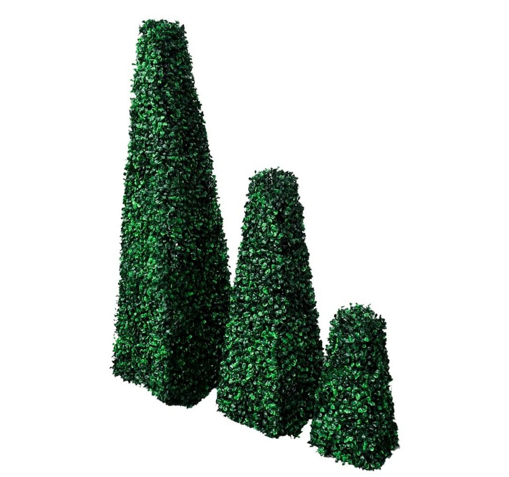 • Dieses Set besteht aus drei künstlichen Buchsbaum-Pyramiden, die sowohl drinnen als auch draußen verwendet werden können