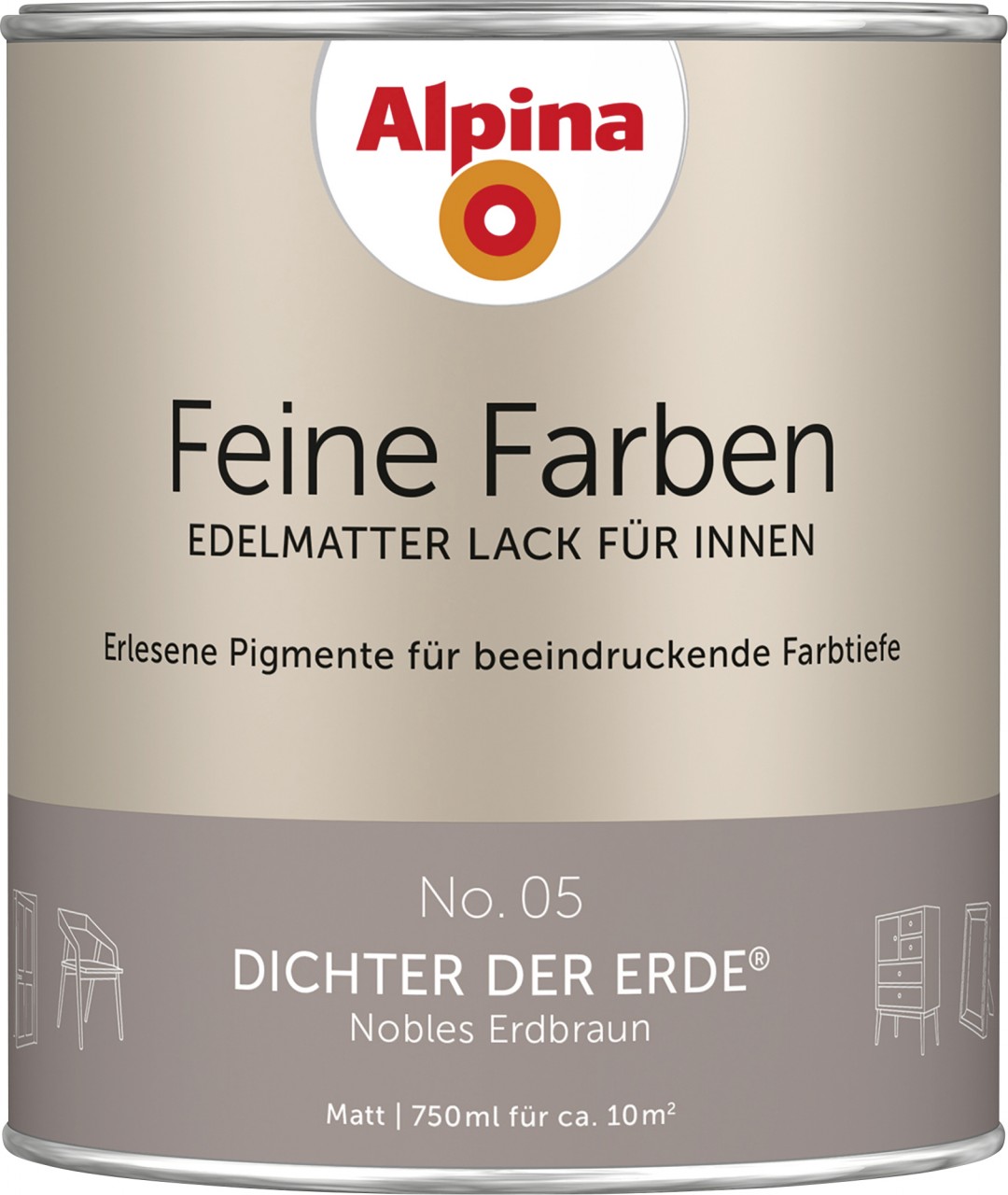 • Alpina Feine Farben Lack No. 05 Dichter der Erde bietet eine edelmatte Oberfläche, die durch ihre beeindruckende Farbtiefe und Brillanz besticht.