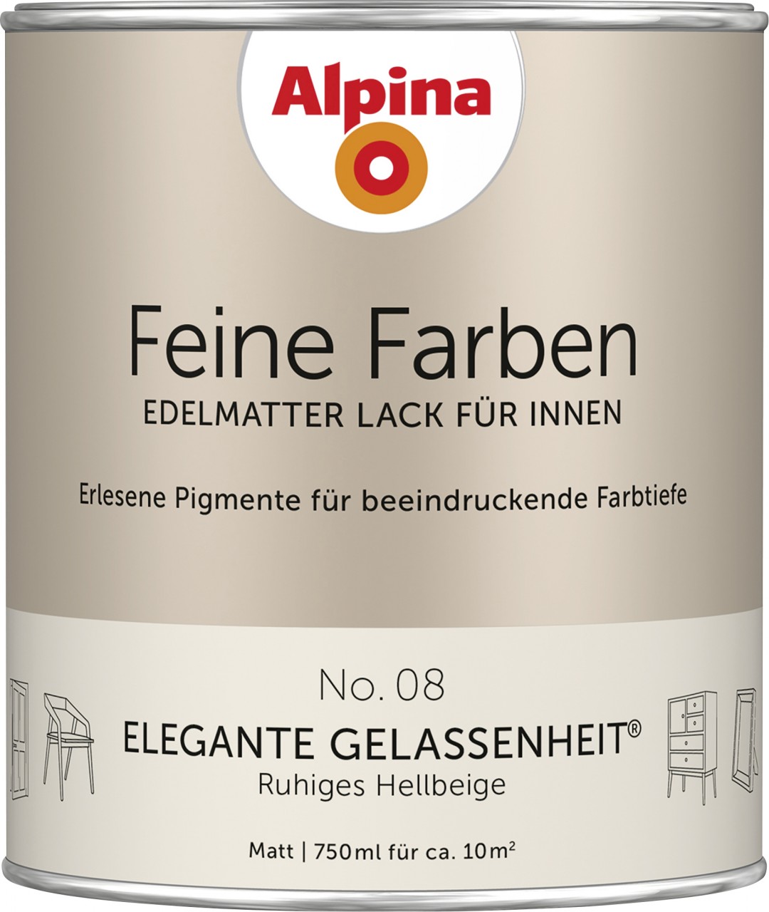 Der Alpina Feine Farben Lack No. 08 Elegante bietet eine einfache Anwendung und eine gute Deckkraft, um Ihre Wände mit einem eleganten Finish zu versehen.
