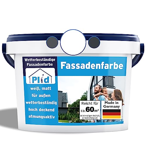 Wetterbeständige, hochdeckende Fassadenfarbe, die in Deutschland produziert wird.