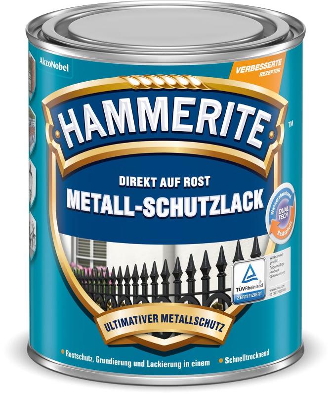 Der HAMMERITE Metallschutz-Lack in matt schwarz bietet eine hohe Leistung zum Schutz von Metalloberflächen vor Rost und Abnutzung. Er lässt sich direkt auf Rost auftragen, hat eine gute Deckkraft und trocknet schnell zu einer langlebigen, matten Oberfläche. Die Witterungs- und UV-Beständigkeit sorgt dafür, dass die Farbe auch nach längerer Zeit ansprechend bleibt.
