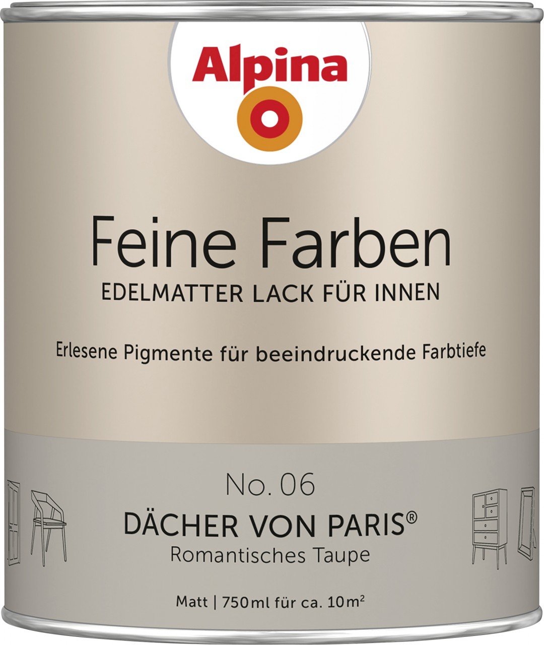 • Alpina Feine Farben Lack No. 06 Dächer von Paris ist ein edelmatte Buntlack, der für Möbel mit Charakter entwickelt wurde.