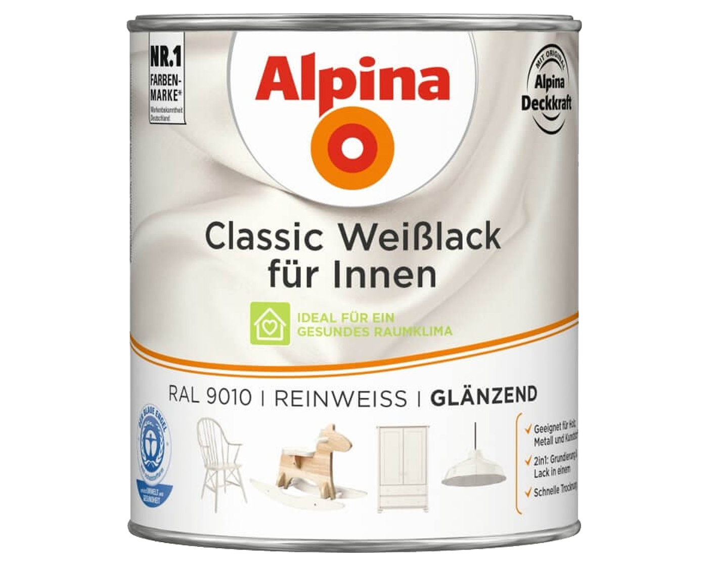 Die Alpina Classic Weißlack Farbe bietet eine hohe Deckkraft, trocknet schnell und hat kaum Geruchsbildung. Sie lässt sich gut verarbeiten und ergibt ein gleichmäßiges, edles Finish. Einige Nutzer erwähnen, dass die Ergiebigkeit nicht optimal ist und mehrere Anstriche erforderlich sein können, insbesondere auf dunklen Untergründen.