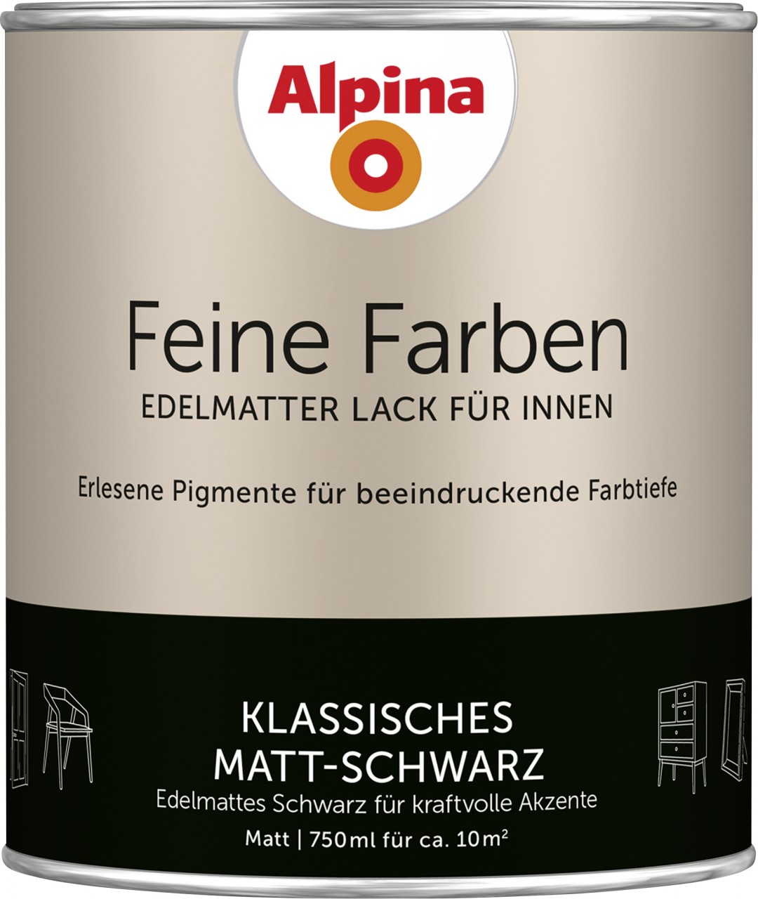 Der Alpina Feine Farben Lack in klassischem Matt-Schwarz Edelmatt bietet eine hochwertige Lösung für die schnelle und einfache Lackierung von Innenräumen. Mit seinem schönen Ergebnis auf verschiedenen Oberflächen sowie der unkomplizierten Verarbeitung ermöglicht er ein angenehmes Malerlebnis.