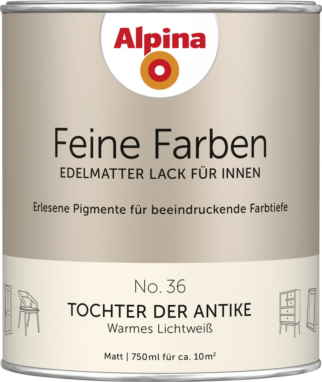• Alpina Feine Farben Lack No. 36 Tochter der Antike ist ein edelmatter Buntlack, der für Möbel mit Charakter entwickelt wurde.