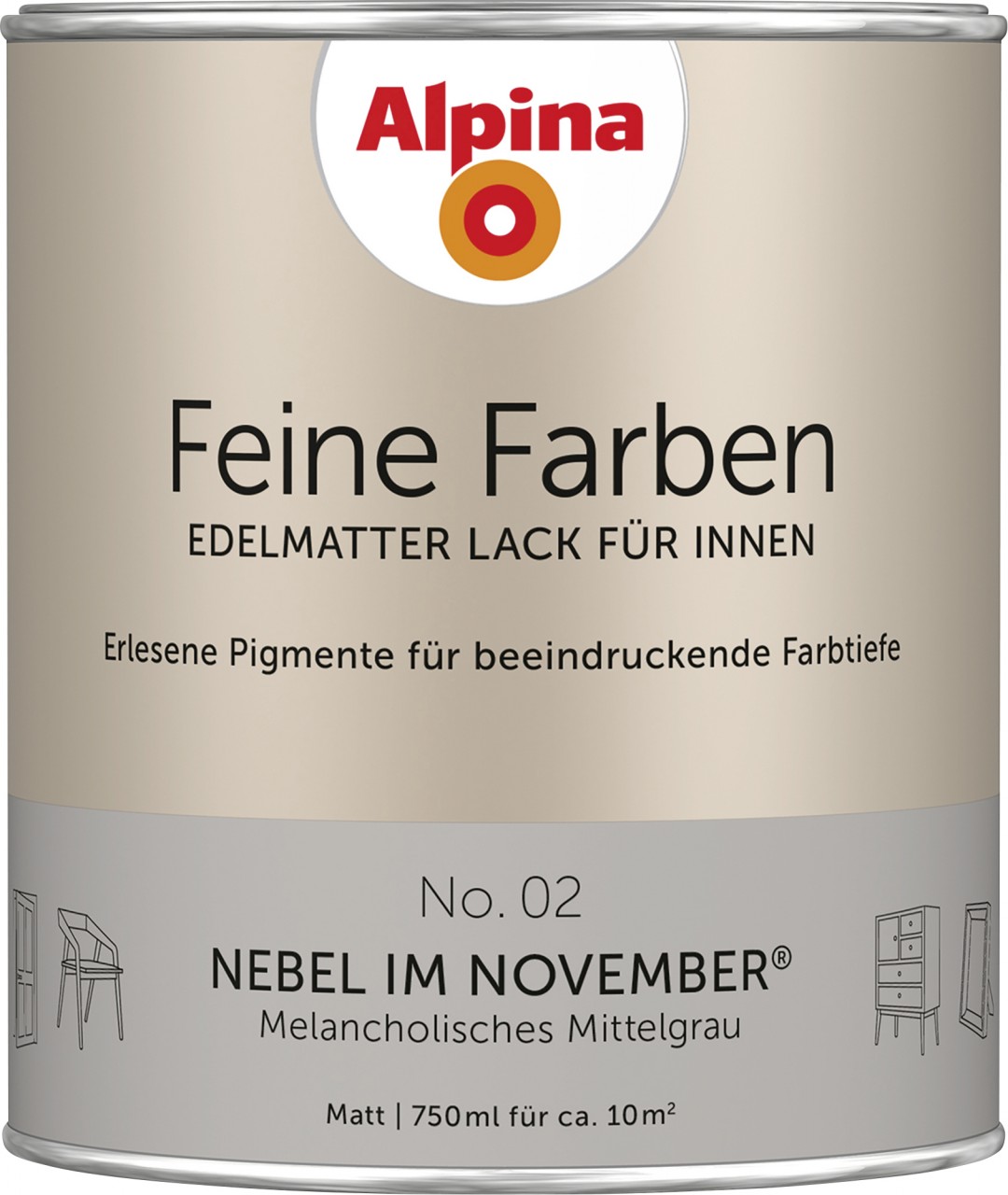 Alpina Feine Farben Lack No. 02 Nebel im November bietet eine einfache Möglichkeit, Möbel zu verschönern. Die Farbe ist leicht zu verarbeiten, geruchsneutral und trocknet schnell, was die Renovierung von Möbelstücken besonders angenehm macht.
