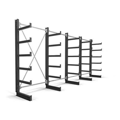 STIER Kragarmregaleinseitig, 4 Felder mit 5 Ebenen, BxHxT 5200x2000x500mm, Tragkraft pro Kragarm 200kg, stabile Bodenverankerung, Made in Germany