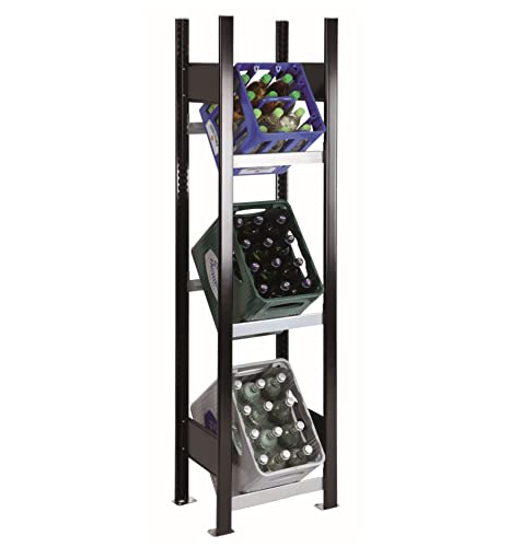 SCHULTE Regalwelt Getränkekistenregal für bis zu 3 Kisten180x40x30 cm (HxBxT), Traglast pro Ebene 60 kg, schwarz-silber, Getränkeregal, Bierkistenregal, Flaschenkastenständer, Wasserkistenregal