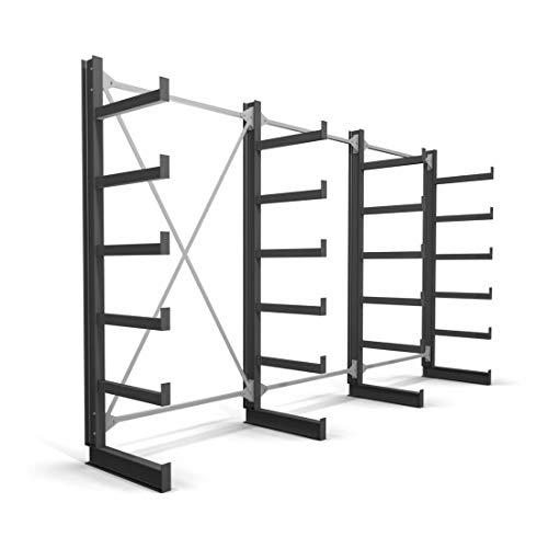 STIER Kragarmregaleinseitig, 3 Felder mit 5 Ebenen, BxHxT 3900x2000x500mm, Tragkraft pro Kragarm 200kg, stabile Bodenverankerung, Made in Germany