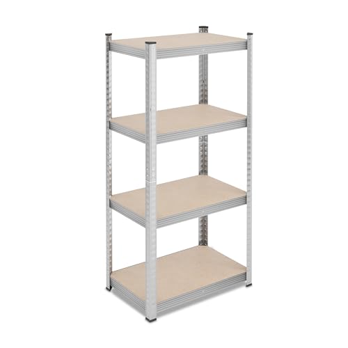 • Das Relaxdays Schwerlastregal ist ein geräumiges Lagerregal aus Stahl und MDF, das sich perfekt für die Garage, den Keller und andere Räume eignet