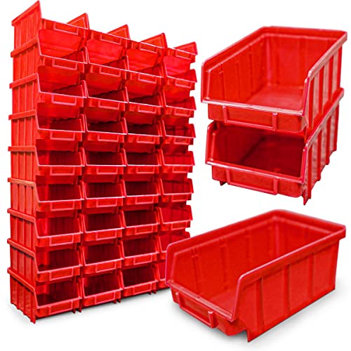 HMH 80x Stapelboxen Rot Größe 2 für Werkstatt Garage Sichtlagerboxen (LxBxH) 175x103x76mm Lagerboxen rote Sichtlagerkästen zur Kleinteile Aufbewahrung Stapelbox PP