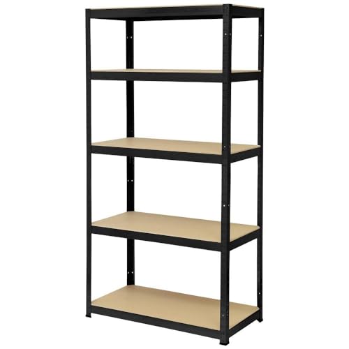 Toolcraft TO-8689791 Schwerlastregal 265 kg (B x H x T) 900 x 1800 x 450 mm Metall, MDF matt Schwarz Holzboden, Lagerregal mit abgerundeten Kanten und einfacher Montage