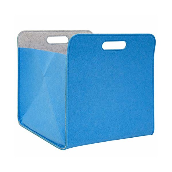 Die Filz Aufbewahrungsbox 33x33x38 cm Kallax Filzkorb ist ideal für die Aufbewahrung von Vinylplatten im Stehen. Sie passt gut in Regale, ist dick und gepolstert, und der blau Farbton entspricht der Abbildung. Ein Kunde war sehr zufrieden, während ein anderer mit der Weichheit des Materials unzufrieden war.