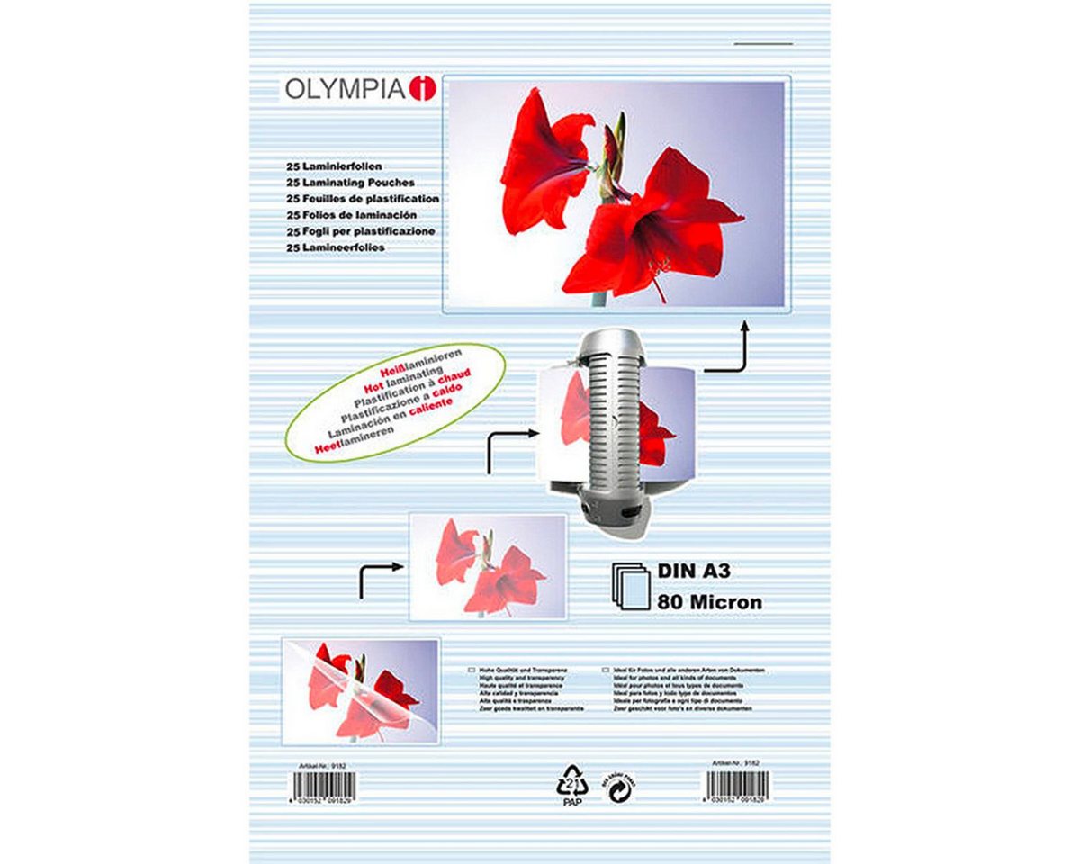 Die Olympia Laminierfolie überzeugt durch ihre einfache Handhabung und hohe Qualität. Sie liefert klare und glänzende Ergebnisse ohne Blasenbildung und bietet eine ausgezeichnete Haftung. Die Folien sind stabil und bieten ein gutes Preis-Leistungs-Verhältnis.
