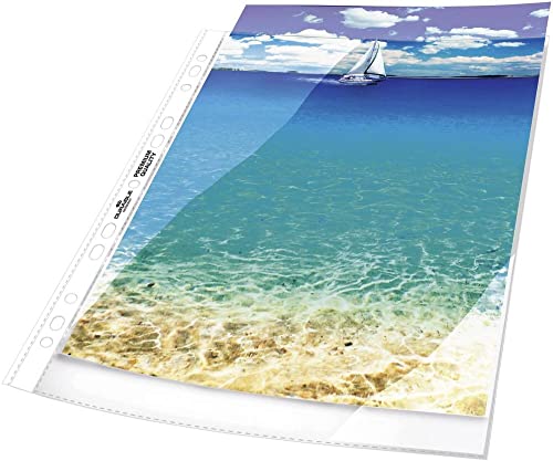 Glasklare Prospekthüllen aus Polypropylen (PP) Dokumentenecht - keine Übertragung von Druckerfarbe 6-fach-Lochung und Lochrandverstärkung Made in Germany ---------------------------------------- Merkmale: Format: A5 Oberfläche: glasklar Öffnung: oben Folienstärke: 0,06 mm ---------------------------------------- weitere Produktinformationen: Farbe: transparent Material: Polypropylen Inhalt: 25 Stück