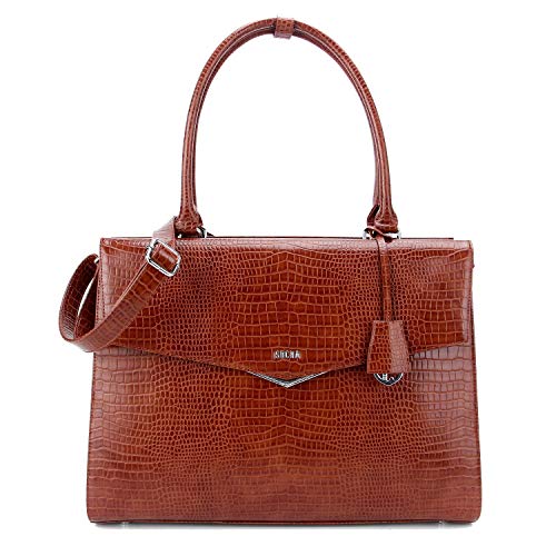 Socha Laptoptasche Damen/Businesstasche Frauen/Aktentasche mit Tragegurt - Elegant - Extra leichte Synthetik Kroko - Silver Tip Brown - 15.6 Zoll Braun