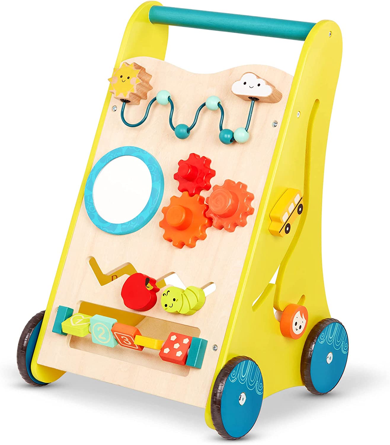 | Beschreibung | Ein farbenfroher Holz-Lenkwagen mit einer leicht zu haltenden Stange, glatten Rädern und einer Vielzahl von pädagogischen Funktionen Beinhaltet einen Spiegel, eine Uhr, ein Perlen-Labyrinth, drehende Zahnräder, Zahlenfliesen, Zick-Zack-Schiene und ein Labyrinth mit beweglichen Knöpfen Dieser Activitywalker verbessert die motorischen Fähigkeiten, das Gleichgewicht und die Stabilität Dieser Gehwagen hat einen praktischen Stauraum auf der Rückseite Dieses Holzspielzeug wird für Kinder ab 12 Monaten empfohlen, Hersteller: Branford Ltd. |