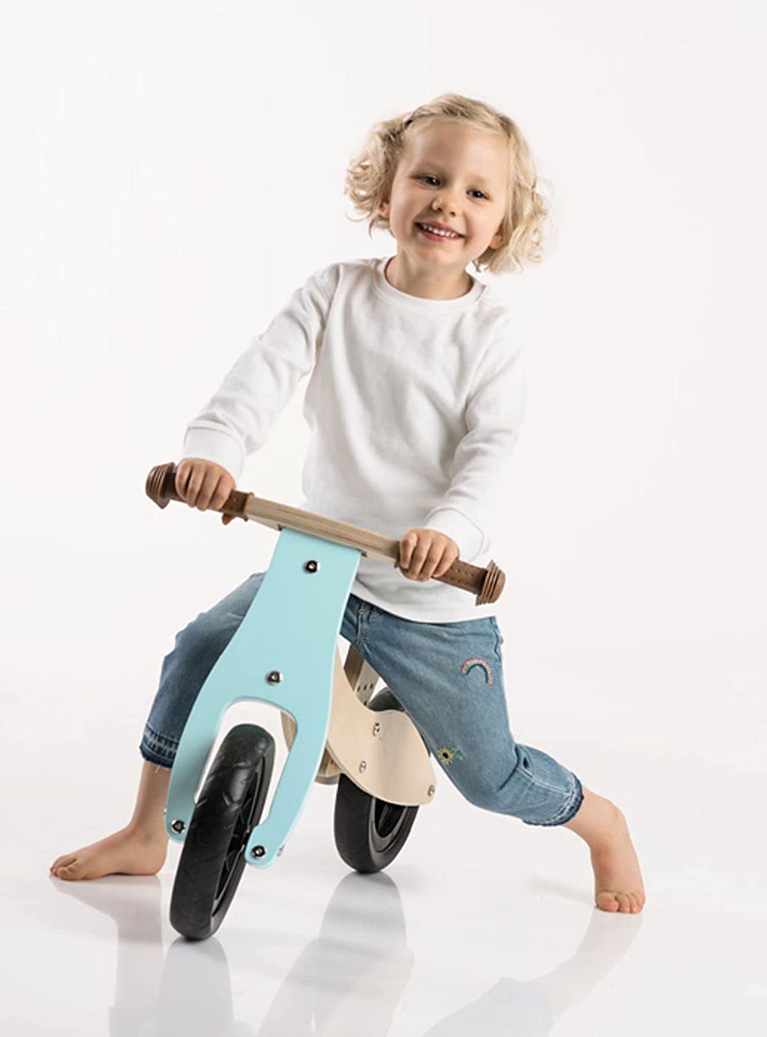 Cool und sicher! Dieses leichte, mitwachsende Lauflern-Trike aus Holz passt sich mit 3-fach höhenverstellbarem Sattel und 3-fach verstellbarem Sitzabstand perfekt ans Kind an! Für Fahranfänger ist die sichere, dreirädrige Variante mit zwei Hinterrädern ideal – wenn Lernfortschritt und Gleichgewicht es erlauben, wird es zum klassischen Laufrad umgebaut! Der Lenker mit Einschlagsbegrenzung bietet ein Plus an Sicherheit! In der abnehmbaren Lenkertasche finden Lieblingsspielzeug & Co. Platz. Gummigriffe, unkaputtbare EVA-Softbereifung und der weiche Sitz sorgen für Fahrkomfort. Erst Lauflern-Dreirad, dann Laufrad! Das ist die perfekte Vorbereitung auf das Fahrradfahren ohne Stützräder. Laufräder und Trikes schulen wie kein anderes Kinderfahrzeug Motorik, Gleichgewicht und Koordination – und das ganz individuell!