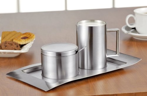 Esmeyer Wave – Gemeinsam Milchkännchen und Zuckerdose WaveEdelstahl gebürstet, Maße des Tablett 260 x 140 mm