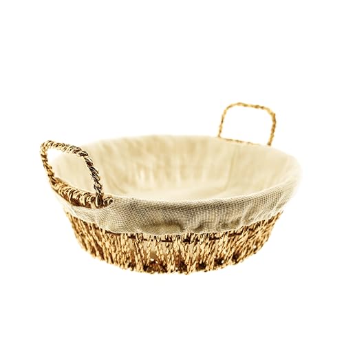 Trendmax Brotkorb Brotkorb mit Tuch aus Aluminium und Leinenstoffverschiedene Formen, Gold/Weiß
