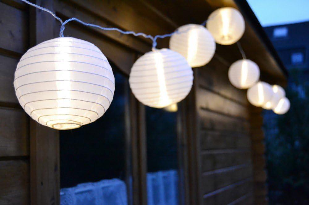 Beschreibung - Geeignet für Innen und Außeneißen LED bestücktif;">Stilvolle Akzentbeleuchtung - Nicht nur für Ihre Terrasse oder Ihren Garten. - LED Lichterkette mit 20 Lampions - je 7,5 cm Durchmesser - Jeder Lampion ist mit einer warmweißen LED bestückt - Abstand zwischen den Lampions 25 cm - Zuleitung 5 m - IP44 Außenadapter - Geeignet für Innen und Außen