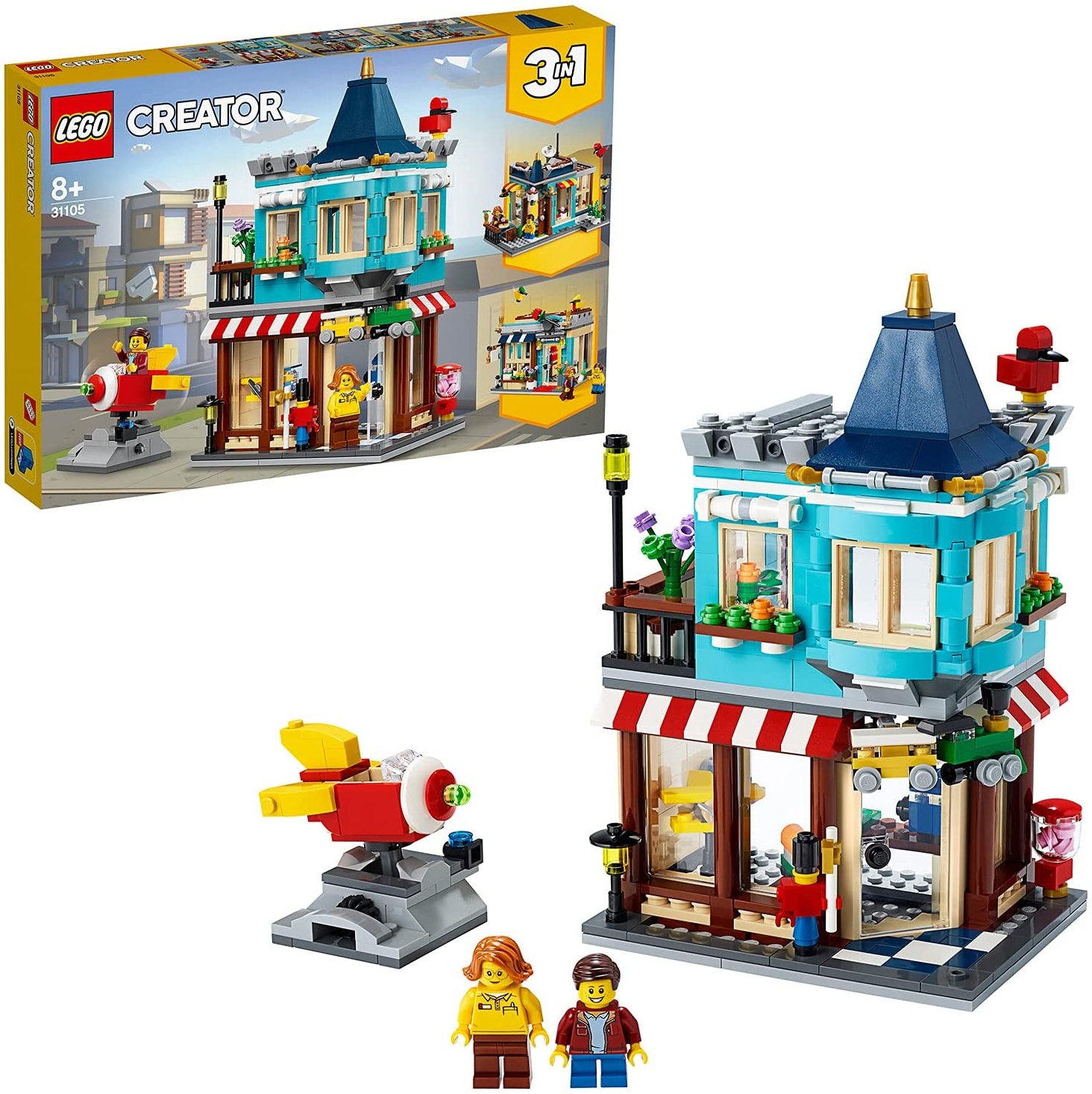 LEGO Creator - 31105 Spielzeugladen im Stadthaus Im Spielzeugladen im Stadthaus erwartet Kinder jede Menge Spielspaß!Fans der LEGO Creator 3-in-1-Reihe werden große Freude an den detailreichen Modellen im Set „Spielzeugladen im Stadthaus“ (31105) haben. Kleine Baumeister werden das zweigeschossige Stadthaus mit Wohnung im Obergeschoss und Spielzeugladen im Erdgeschoss sowie das funktionierende Raketen-Münzfahrgeschäft stundenlang erkunden. Inspiriert Kinder dazu, kreativ zu werden und ganz frei zu bauen Dieses LEGO Creator 3-in-1-Set bietet Kindern drei verschiedene Bau- und Spielerlebnisse. Kinder können erst den Spielzeugladen im zweigeschossigen Stadthaus bauen und ihn dann in eine Konditorei mit LEGO Werkstatt im hinteren Anbau, in einen hübschen Blumenladen oder in etwas völlig Neues umbauen. Dieses Bauspielzeug lädt nicht nur zum fantasievollen Spielen ein, sondern ist auch ein tolles Geburtstags- oder Weihnachtsgeschenk. Einzigartige eigenständige Modelle mit Spieloptionen LEGO Creator 3-in-1 Sets enthalten detailreiche, realistische Modelle, damit die Kinder beim Spielen ihrer Fantasie freien Lauf lassen können. Die Spielzeuge bieten unzählige Bau- und Spieloptionen und sprechen die kreative Seite von Kindern jeden Alters an. Diese spektakulären, inspirierenden Sets für Fans und Kinder sind tolle Geschenke zu jedem Anlass. Warnhinweis: Achtung! Nicht für Kinder unter 36 Monaten geeignet Achtung! Enthält verschluckbare Kleinteile. Erstickungsgefahr. Bei Sortimenten und Großpackungen gilt der angegebene Preis pro Stück. Eine Auswahl ist nur bedingt möglich!