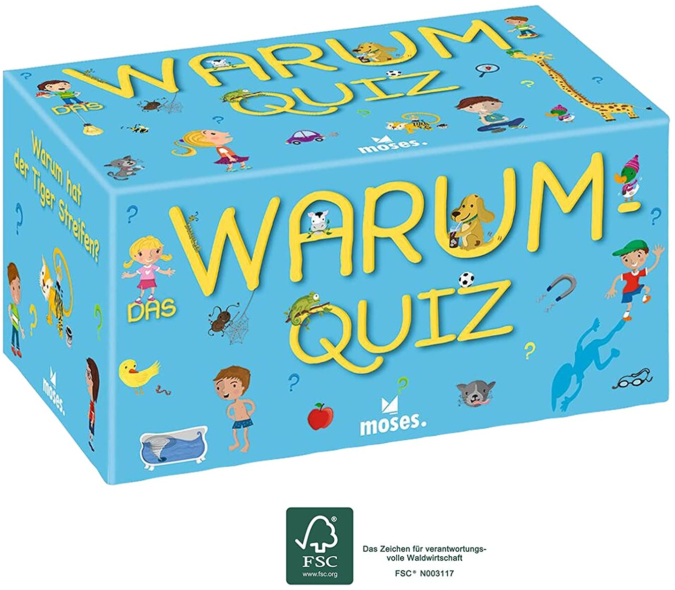 Das moses. Das Warum-Quiz ist ein unterhaltsames und lehrreiches Spiel für Kinder ab 6 Jahren. Mit kindgerechten Fragen und Antworten bietet es eine spannende Möglichkeit, Wissen zu erweitern und spielerisch Neues zu lernen. Die gute Sortierung der Fragen sorgt dafür, dass das Quiz einfach zu spielen ist.