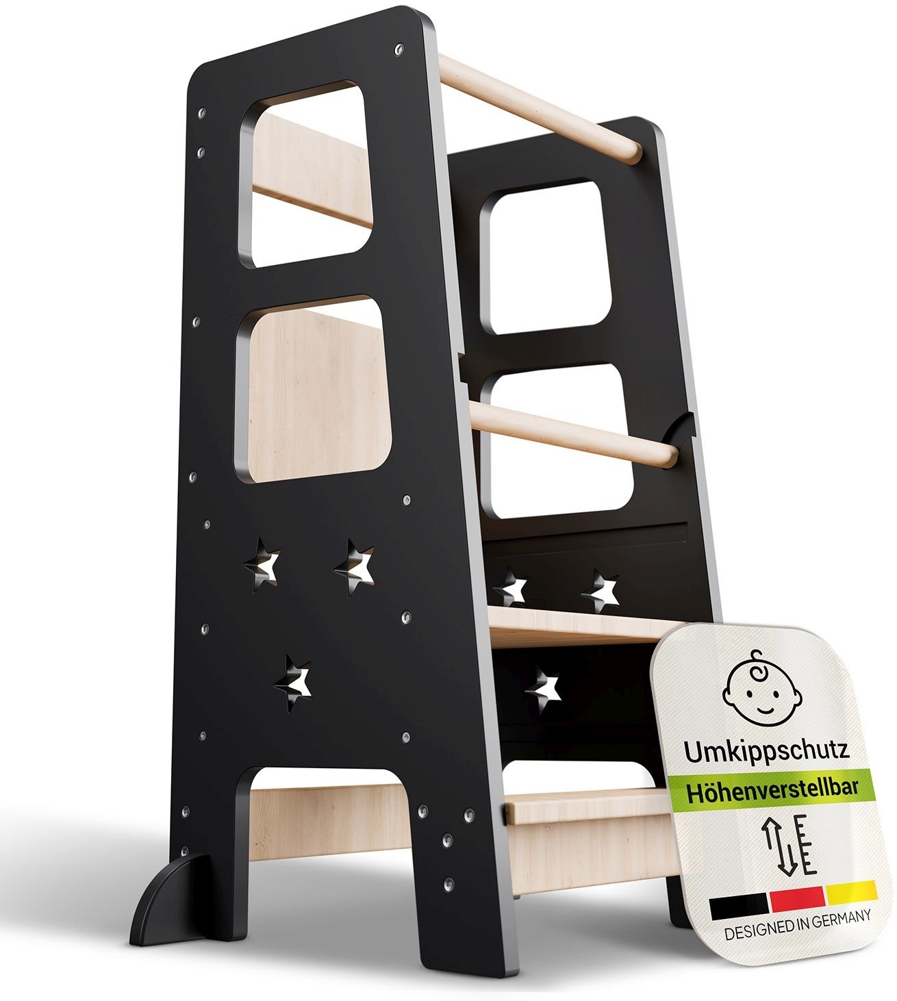 | Name | Juskys 'Henny' Lernturm - für Kinder ab 1 Jahr, Stehhilfe, 3-fach höhenverstellbar, Umkippschutz, Küchenhelfer, Schwarz |