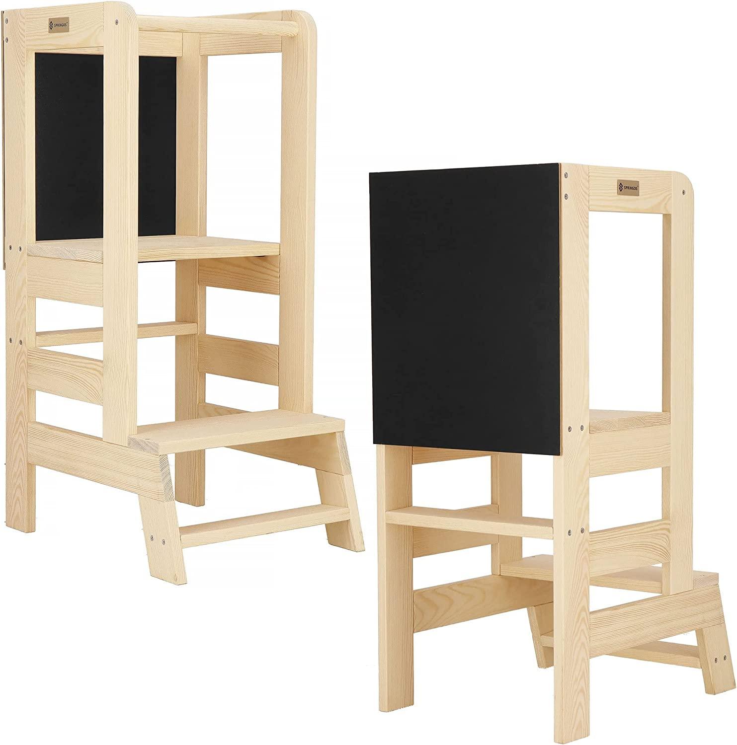 | Name | SPRINGOS Küchenhelfer mit Tafel für Montessori-Haus 90 cm Massivholz Treppenhochstuhl mit Plattform Lernturm |
