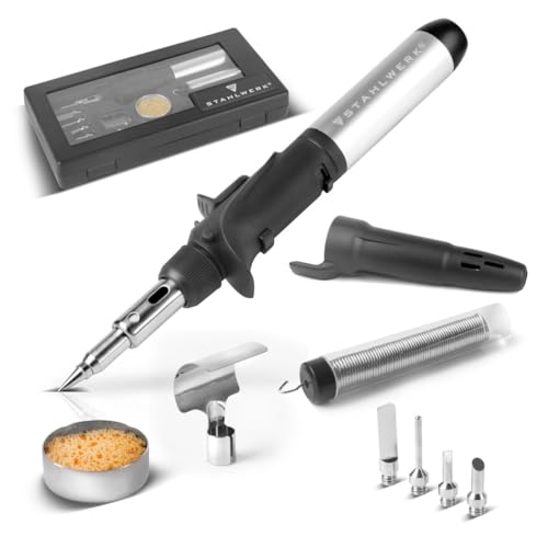 STAHLWERK Gas-Lötkolben GLK-500 ST 3-in-1 Gas-Löt-Set | Lötgerät | Lötstation | Lötpistole200-500°C Löttemperatur, 1.300°C Flammdüse, für Heißluft-, Brand- und Lötarbeiten