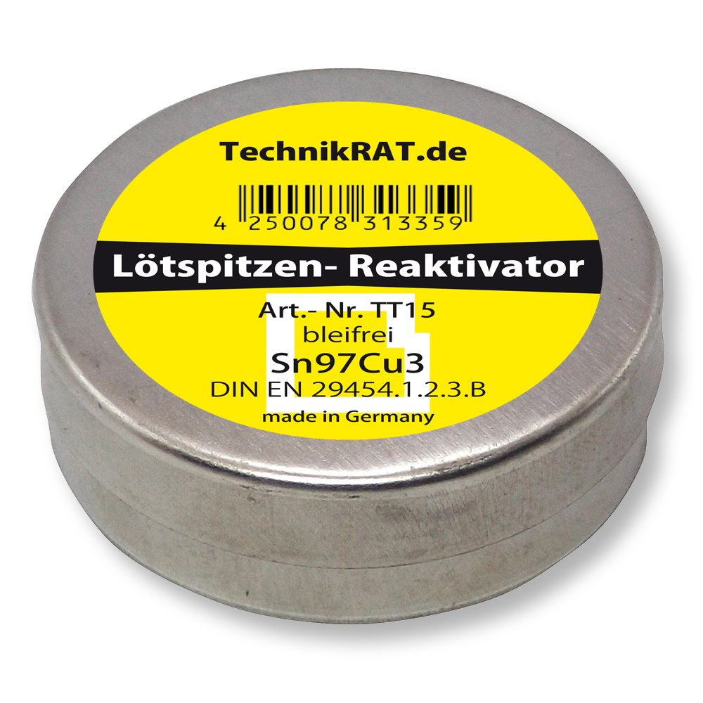 Der TechnikRat TT15 Lötspitzen-Reaktivator ist ein effektives Produkt zur Pflege und Reinigung von Lötspitzen. Er entfernt Oxidation und Ablagerungen, wodurch die Spitzen wieder sauber und funktionstüchtig werden. Die Anwendung ist einfach und die Formulierung ist bleifrei, was sie umweltfreundlich macht. Nutzer berichten von einer deutlichen Verbesserung der Lötqualität nach der Anwendung.