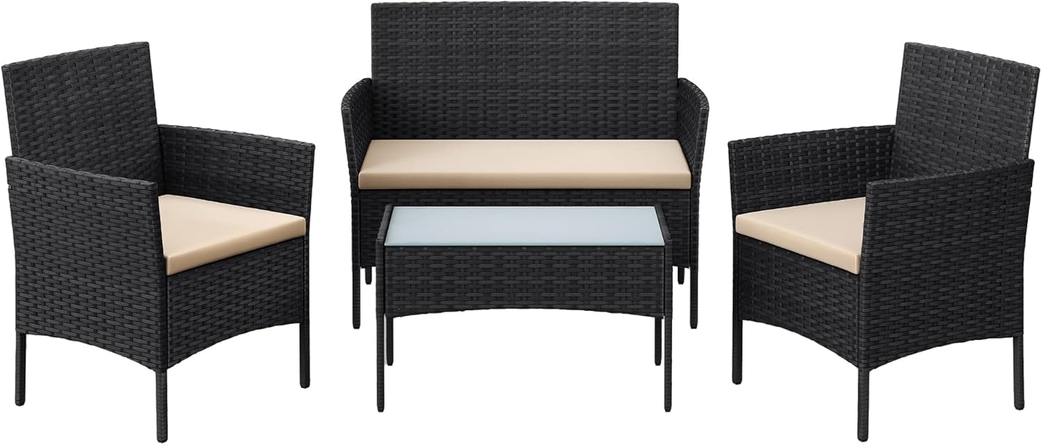 | Name | Songmics Gartenmöbel-Set, 4-tlg., Polyrattan schwarz / taupe |