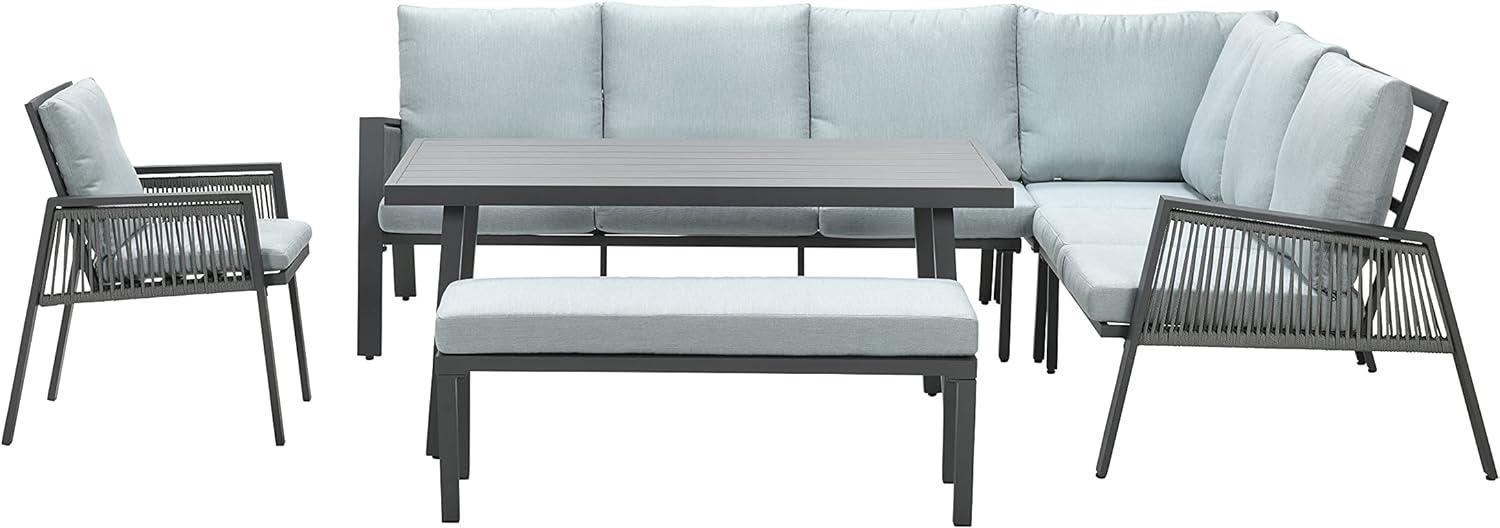 | Name | Garden Impressions 'Yoshi' Lounge-Set mit Ecksofa, Tisch, Sessel und Kissen, Mint / Grau, Rechts |