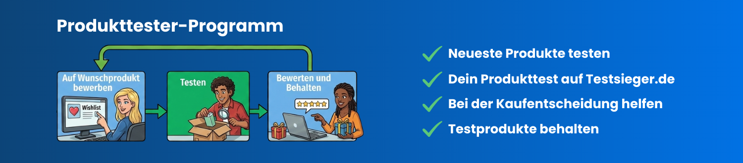 Nach dem Test gehört das Produkt dauerhaft dir. Kein Rückversand, keine Kosten – nur dein ehrliches Feedback zählt.