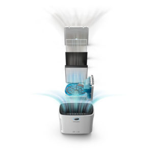 Die Raumluft wird in den Luftreiniger hineingesogen. Dort strรถmt sie durch spezielle Filter, die die Luft von Unreinheiten beseitigen. Die dann gefilterte und zugleich saubere Luft strรถmt dann durch separate Auslรคsse wieder in den Raum hinein.